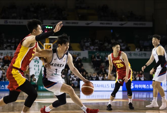 这个窗口期的世预赛,中国队被韩国队双杀,虽然坐拥胡金秋、周琦这两位国内顶级内线,但郭士强又把他俩当作大腿来抱,摒弃了此前亚洲杯的取胜之匙快速攻防转换和三分球投射。