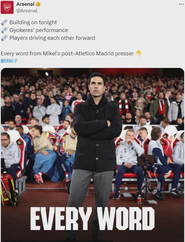 阿尔特塔出席了赛后新闻发布会,我们来看看阿森纳主帅的发言。