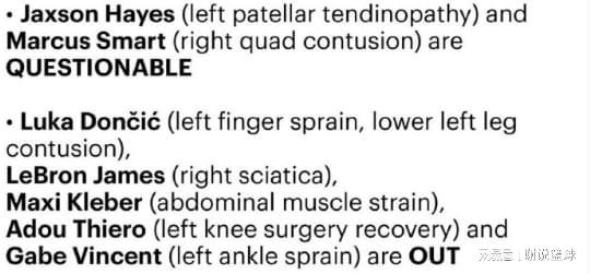 好消息,湖人队马库斯·斯马特和海耶斯在最新伤情报告中被提升